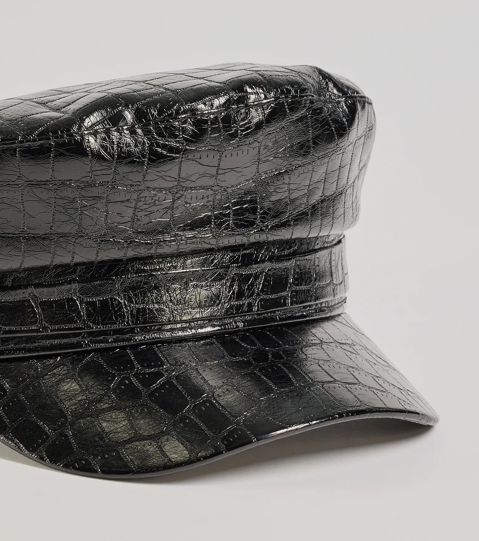 Edgy Sleek Croc-Embossed Cabbie Hat